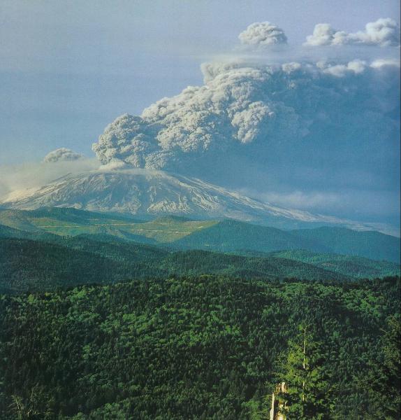 | A view of the south face of Mt. St. Helens during the 1980 eruption. |